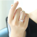 This exquisite ring features a brilliant round-cut stone held by four elegant prongs, symbolizing balance, devotion, and everlasting connection. Its luminous centerpiece shimmers with every movement, reflecting light as softly as moonbeams on still water.
